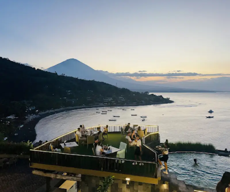 Amed Sunset Point, on Bali’s east coast, offers breathtaking views of Mount Agung and the Indian Ocean. Perfect for first-time visitors, it’s ideal for late-afternoon relaxation as the sky transforms from orange to purple.