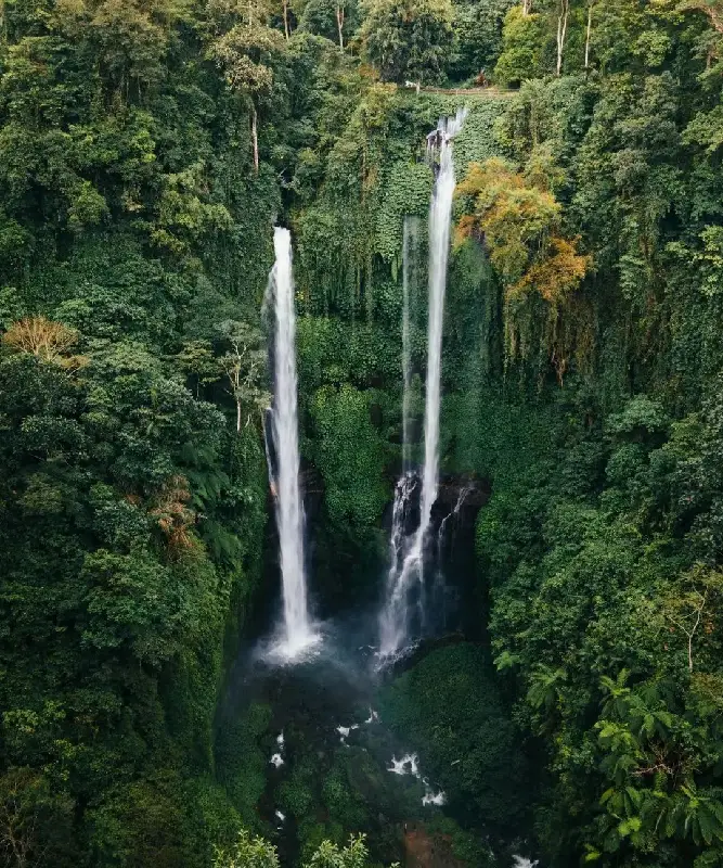 Located in northern Bali near Lovina, this hidden gem offers a dramatic natural setting with powerful water flowing from high cliffs, creating a refreshing mist and soothing atmosphere.