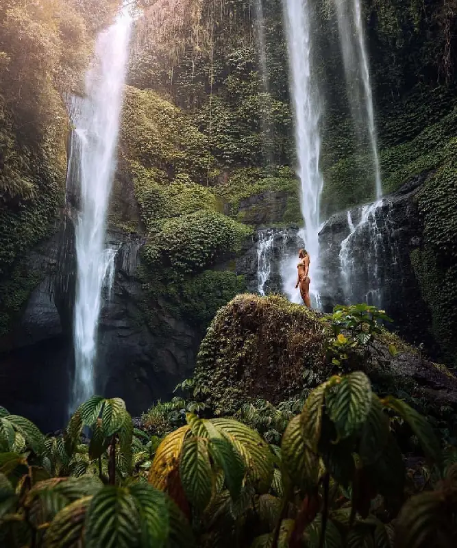 Nestled in northern Bali, Sekumpul Waterfall is reached via a jungle trek through rice terraces and rivers. Known as Bali’s most beautiful cascade, the 1-2 hour moderate descent from Gitgit village reveals 7-tiered falls plunging into emerald pools amid thick rainforest.