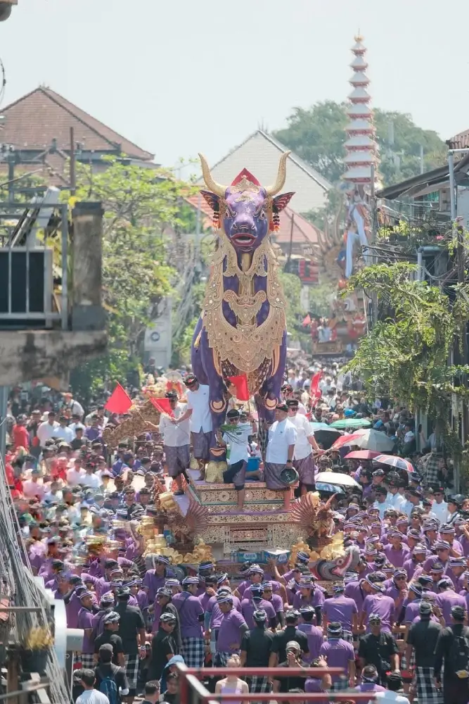 Alongside the bade, the pelebon procession features a lembu, a cremation sarcophagus shaped like a black bull or other symbolic creatures. The lembu serves as the sacred vessel where the cremation takes place.