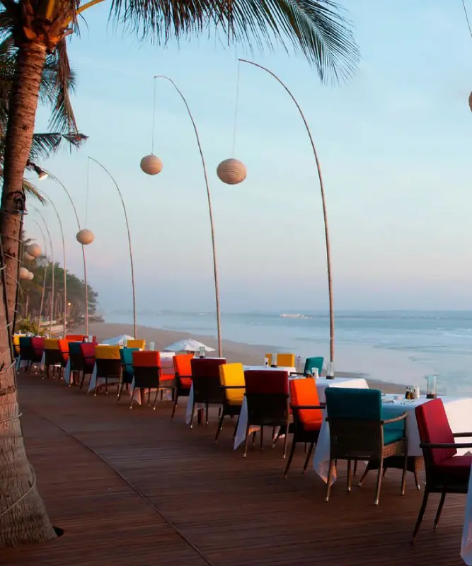 Breeze at The Samaya sits directly on Seminyak Beach. It offers romantic beachfront dining with soft ocean breezes. The ambiance is elegant yet relaxed, perfect for sunset moments.